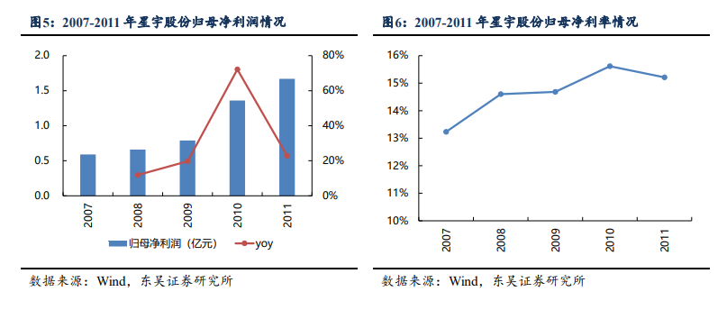 轿车周期后期(2007-2011):这一阶段星宇的营业收入和盈利能力处于双升阶段,主要的成长驱动客户为德系的南北大众和日系的一汽丰田。公司在这一阶段完成了上市,开启了加速扩张;同时,公司持续加大研发投入并制定了积极的客户拓展计划,为后续新项目、新产品的开发和获取打下了基础。