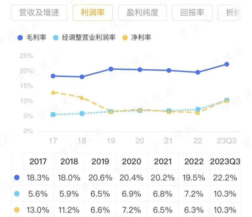 回归到主业上,2017-2022年,公司的扣非净利润没什么增长,2023年前三季度为9.3亿,同比增长11%。