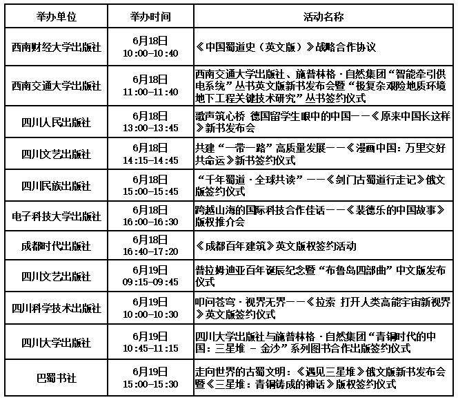 图博会期间,新华文轩将重点展示共建“一带一路”的主题出版物;承载着合作共赢的时代使命,以及蕴含中国智慧的典籍;阐释中国智慧、中国经验、中国成就的重点出版作品。聚焦大熊猫、三星堆、三苏文化、蜀道文化等具有巴蜀特色文化的外向型精品出版物,以独特的地域文化为内核,吸引全球目光。此外,还有作为四川出版走向世界有力见证的“亚洲经典著作互译计划”“丝路书香”“经典中国”“中国当代作品翻译计划”等国家级对外出版项目支持的外文出版物。通过新书发布、国际合作签约等活动,聚焦文轩出版优质新作的国际化传播,搭建以出版为媒的文明对话桥梁,推动中华优秀传统文化、巴蜀文化的国际传播。