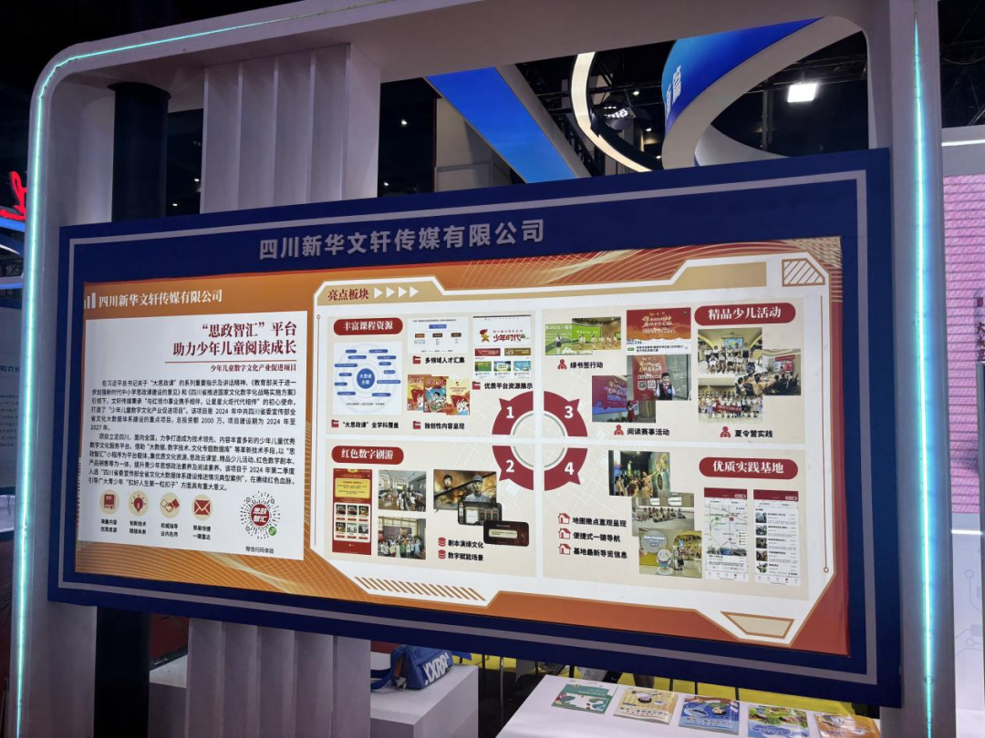 作为特邀的图书出版集团之一,新华文轩出版传媒股份有限公司(以下简称“新华文轩”)以“构建数智生态,共赢新质未来”为主题,以独特的数字化转型战略、多元化的融合出版产品、创新的版权服务平台,以及丰富的互动体验为特色,通过数博会平台展示公司在融合出版、数字阅读、智慧教育、版权保护、科技标准等领域的技术成果与战略布局,提升新华文轩数字品牌影响力,推动四川数字出版产业高质量发展。