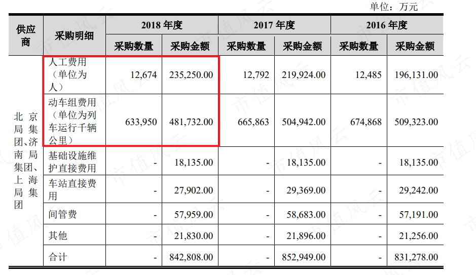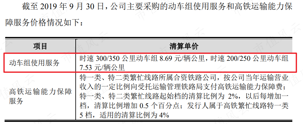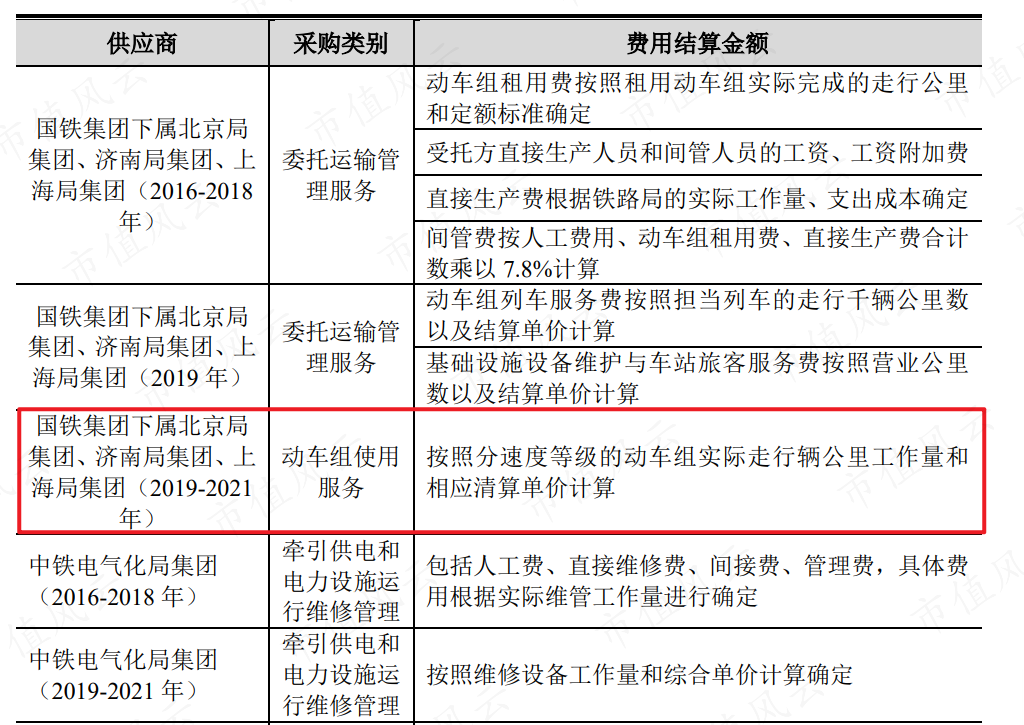 而在公司招股书中披露的委托管理费用组成中,占最大比重的两项便是“动车组使用费”与“人工使用费”。