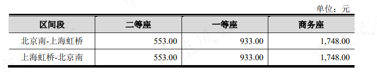 京沪高铁招股书上显示报告期间公司的票价区间位于500-1800元。