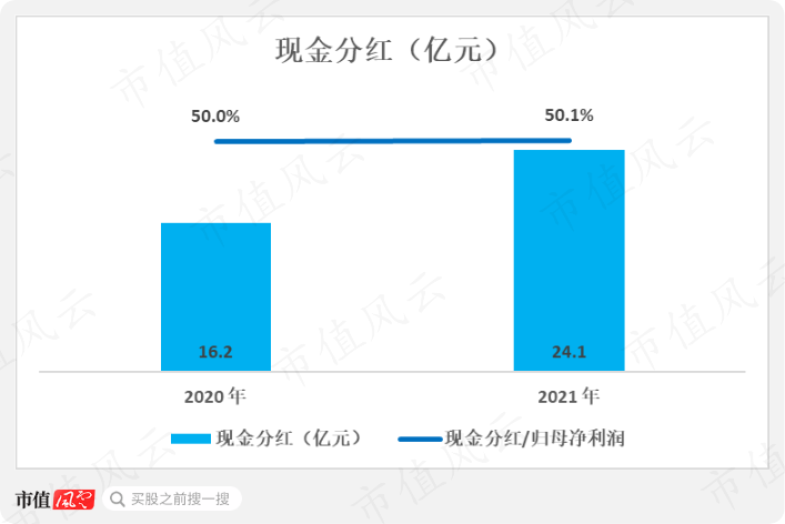 公司在上市后的两年里分别分红16.2亿与24.1亿,占归母净利润的比例都为50%。