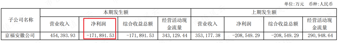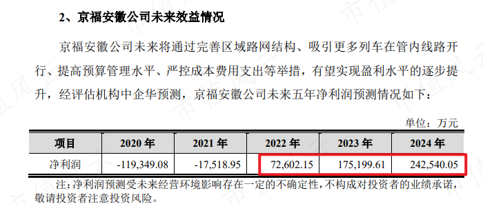 并且招股书预测京福安徽公司会在2022年实现盈利。