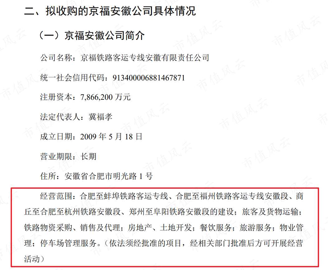 京福安徽公司的主营业务为高铁旅客运输,是合蚌客专、合福铁路安徽段、商合杭铁路安徽段、郑阜铁路安徽段的投资、建设、运营主体。