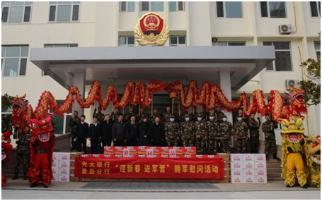 在“拥军雷锋月”期间,光大银行各分行积极开展了形式多样的拥军优属活动,为军人、退役军人及军属送上关爱、送去温暖。北京分行前往中国人民解放军军乐团,看望、慰问军乐团全体官兵,介绍光大银行为军服务开展情况,表示将一如既往为军人、退役军人及军属送去“有温度、有准度、有深度”的金融服务;同时,分行自2019年以来在69家支行网点设置“雷锋岗窗口”,为军人、退役军人及军属提供优质的阳光服务。南京分行协同地方退役军人事务局,来到抗美援朝战斗英雄和伤残退役军人家中,听老战士讲述当年英勇战斗的动人故事并送去生活用品,用心、用情、用力服务好退伍老兵的生活。武汉分行看望了退役军人和烈属家庭,为他们送去了手工缝制的棉衣等生活用品,一针一线让烈士遗属切实感受到光大银行“拥军银行”的温暖和关怀;同时,在分行网点打造了“拥军雷锋月专属角”,为客户提供一对一的专属金融产品咨询服务。沈阳分行慰问了当地困难军人家庭,关心关切他们的生活情况,并送上生活物资。乌鲁木齐分行走进新疆军区某部队,开展了“阳光消保-金融知识进军营”主题活动,获得了部队官兵一致好评。青岛分行走进武警青岛某部队,感谢他们为维护社会稳定作出的突出贡献,并表示光大银行作为新时代金融央企将扎根当地做好为军惠军服务,以高度的责任感和使命感服务军队建设和军人群体,在拥军优抚事业中发挥积极作用。