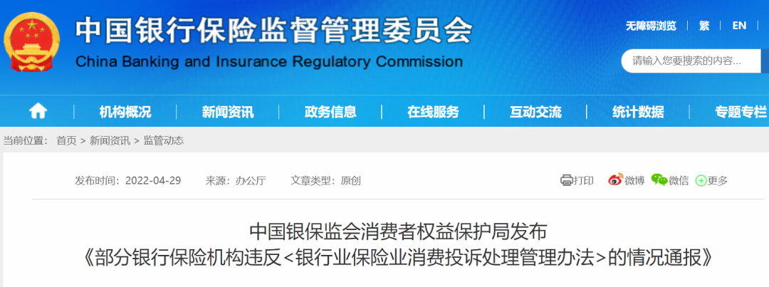 《部分银行保险机构违反的情况通报》指出,经立案调查: