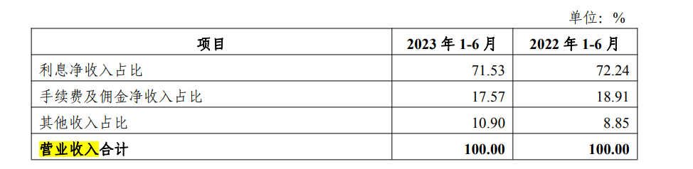 从营收占比来看,光大银行上半年利息净收入占比71.53%,同比下降0.71个百分点;手续费及佣金净收入占比17.57%,同比下降1.34个百分点。