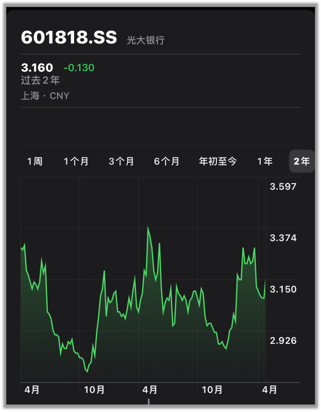 至此,光大银行股价得以稳住,但与年报发布前差距仍然很大。