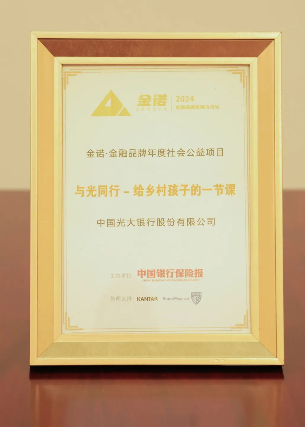 《中国银行保险报》主办的第八届金诺·金融品牌影响力论坛光大银行荣获“2024金诺·金融品牌年度影响力机构”“2024金诺·金融品牌年度新媒体”“2024金诺·金融品牌年度创新案例”。