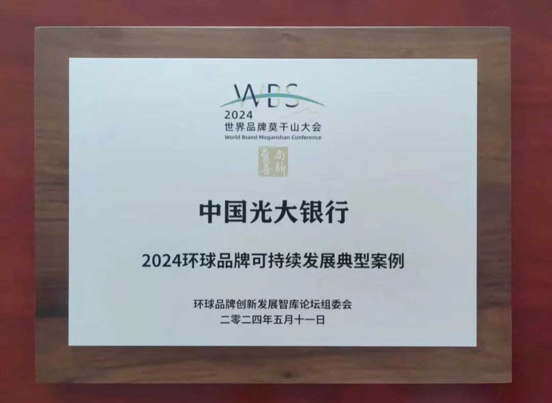 新华社、中国品牌建设促进会联合主办的2024世界品牌莫干山大会光大银行荣获“环球品牌可持续发展典型案例”。