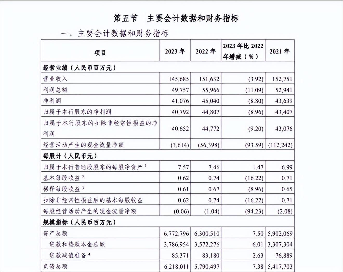 今年三月底,光大银行交出了一份令投资者不甚满意的年度成绩单。该行2023年实现营业收入1456.85亿元,同比下降3.92%;归属于该行股东净利润407.92亿元,同比下降8.96%;归属于股东的扣除非经常性损益的净利润406.52亿元,同比下降9.2%。