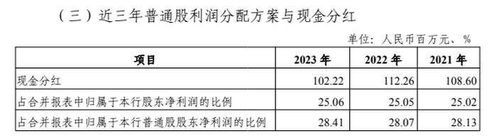 2023年,光大银行公告拟定每10股派1.73元(税前),合计现金股息总额为102.22亿元,占归属股东净利润的25.06%、归属普通股股东净利润的28.41%。