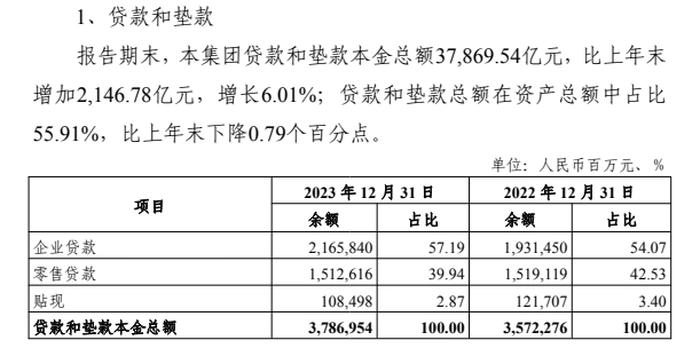 贷款总额增长至3.79万亿元,同比增长了6%,增速有所提升。对公贷款同比大幅增长12.14%至2.17万亿元,贡献了主要增量。在金融机构纷纷围绕“五篇大文章”赋能重点领域之际,光大银行也在推动信贷高质量发展,在科技创新、制造业、普惠小微、绿色贷款领域的投放均加大力度。