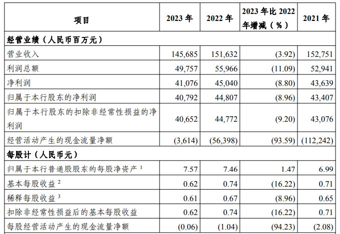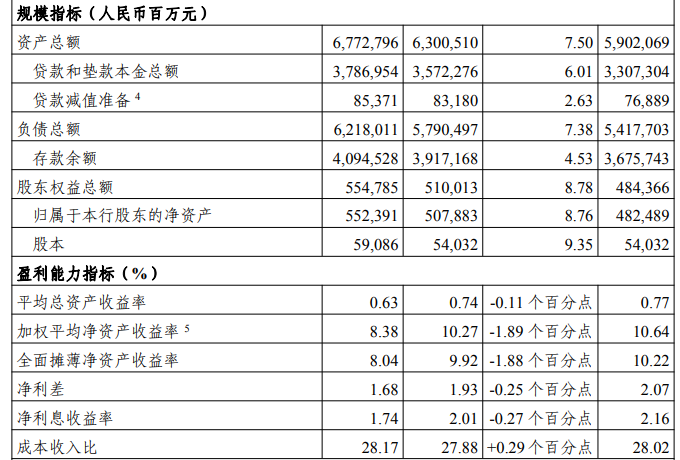 截至2023年末,其资本净额6,513.82亿元,比2022年末增长9.80%;资本充足率13.50%,一级资本充足率11.36%,核心一级资本充足率9.18%,均符合监管要求。