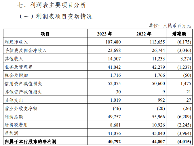 值得一说,2023年,光大银行的利息净收入1,074.80亿元,同比下降5.43%;手续费及佣金净收入236.98亿元,同比下降11.39%。