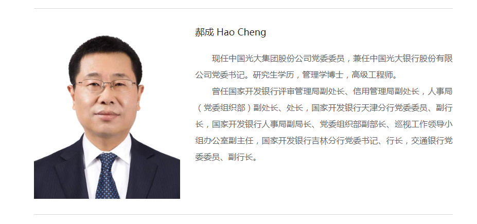 同时,根据光大集团官网近期更新的集团领导信息,目前郝成已出任中国光大集团股份公司党委委员,兼任光大银行党委书记。