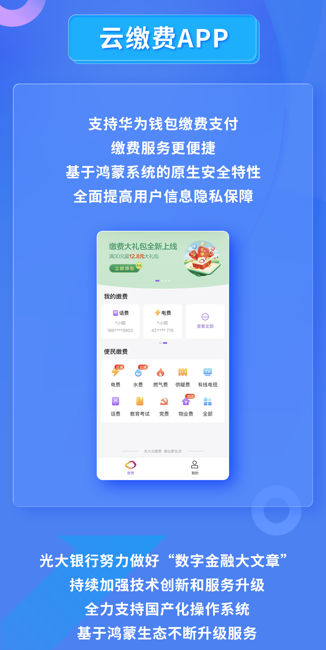 业内首批!光大银行APP、云缴费APP鸿蒙版正式上线
