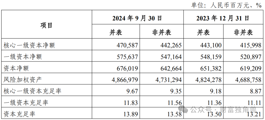 资本充足率方面,9月末光大银行资本充足率为13.89%,一级资本充足率为11.83%,核心一级资本充足率为9.67%。