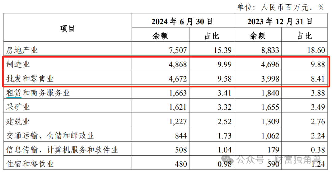 分行业来看,截至6月末,光大银行制造业和批发零售业的不良贷款余额和对应占比均有所提升:制造业不良贷款余额从去年末的46.96亿元增至48.68亿元,批发和零售业的不良贷款则从去年末的39.98亿增至46.72亿元,两大行业不良贷款的合计净增加额达到了8亿多。