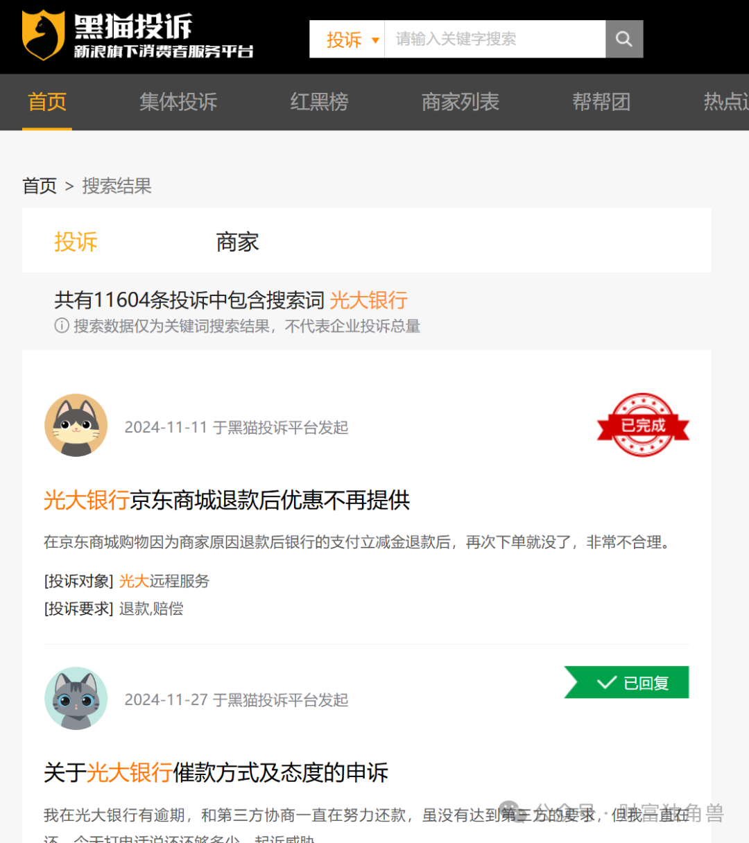 当然,光大银行还因信用卡业务被多次投诉。据黑猫投诉平台显示,截止12月4日光大银行涉及诉讼近1.2万条。