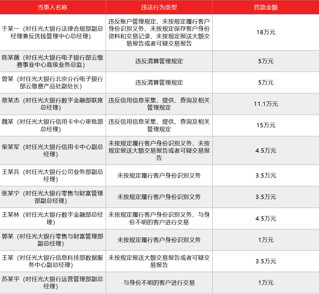 同时,时任法律合规部副总经理兼反洗钱管理中心总经理在内的12名责任人受到监管1万元到18万元的罚款,多人同时遭到警告。