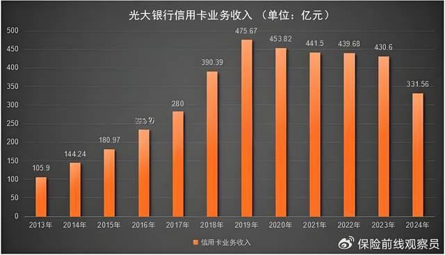 这次大规模坏账转让并非偶然,而是光大银行信用卡业务整体下滑的一个缩影。最新数据显示,2024年该行信用卡交易金额仅为1.68万亿元,较2023年的2.37万亿元大幅缩水29%;信用卡业务收入331.56亿元,同比减少23%,这已经是该业务收入连续第五年下滑。