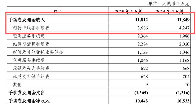 作为银行中间业务收入的重要部分,光大银行手续费及佣金净收入上半年为104.43亿元,同比也下降0.85%。光大银行表示,主要是银行卡服务手续费收入减少,银行卡服务手续费同比下降了5.61亿元。