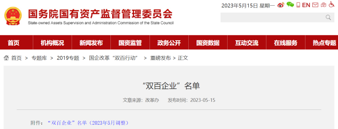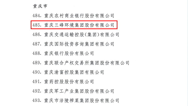 5月15日,国务院国资委发布“双百企业”名单,三峰环境集团再度上榜。