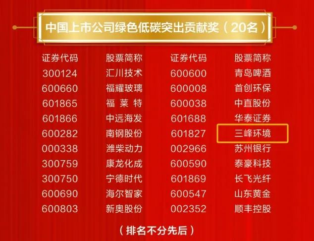 近日,2023中国明星基金暨上市公司价值双峰论坛在深圳举办。会上,由证券时报社主办的第十七届中国上市公司价值评选获奖名单同步揭晓,三峰环境荣获“中国上市公司绿色低碳突出贡献奖”。这也是该奖项的首次评选,全国共有20家优秀上市公司获奖。