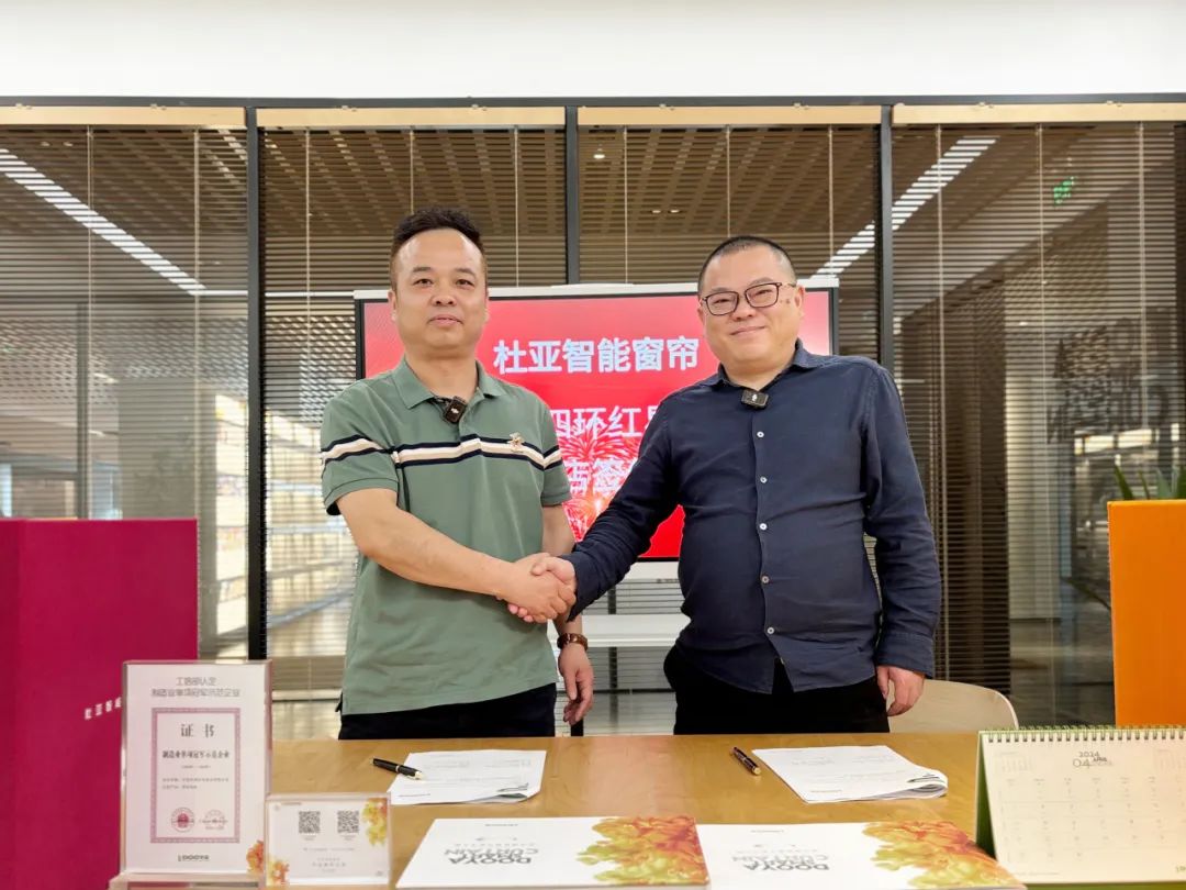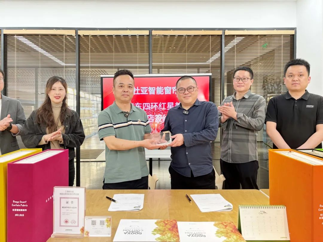 在全面了解杜亚智能窗帘的品牌实力、产品技术与市场前景后,北京晟辉恒创智能科技有限公司与杜亚智能窗帘达成了深度合作共识。双方正式签署专卖店项目合作协议,杜亚授权北京晟辉恒创智能科技有限公司开设杜亚智能窗帘北京东四环红星美凯龙专卖店。