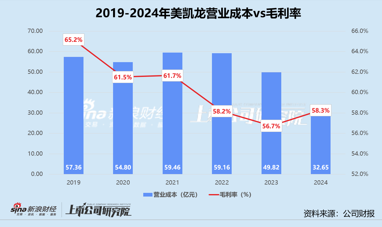 2024年,美凯龙的营业成本控制得当,同比减少34.5%,降幅高于营业收入降幅,录得32.65亿元。其中,家居商业服务业相关的自营及租赁业务、委托经营管理业务营业成本与2023年相比分别下降7.2%、21.2%,整体降幅约为12.3%,低于营业收入降幅22.6%;而建筑装饰服务业务因大刀阔斧收缩人工等相关开支,营业成本明显压缩81.1%,高于同期营业收入降幅。