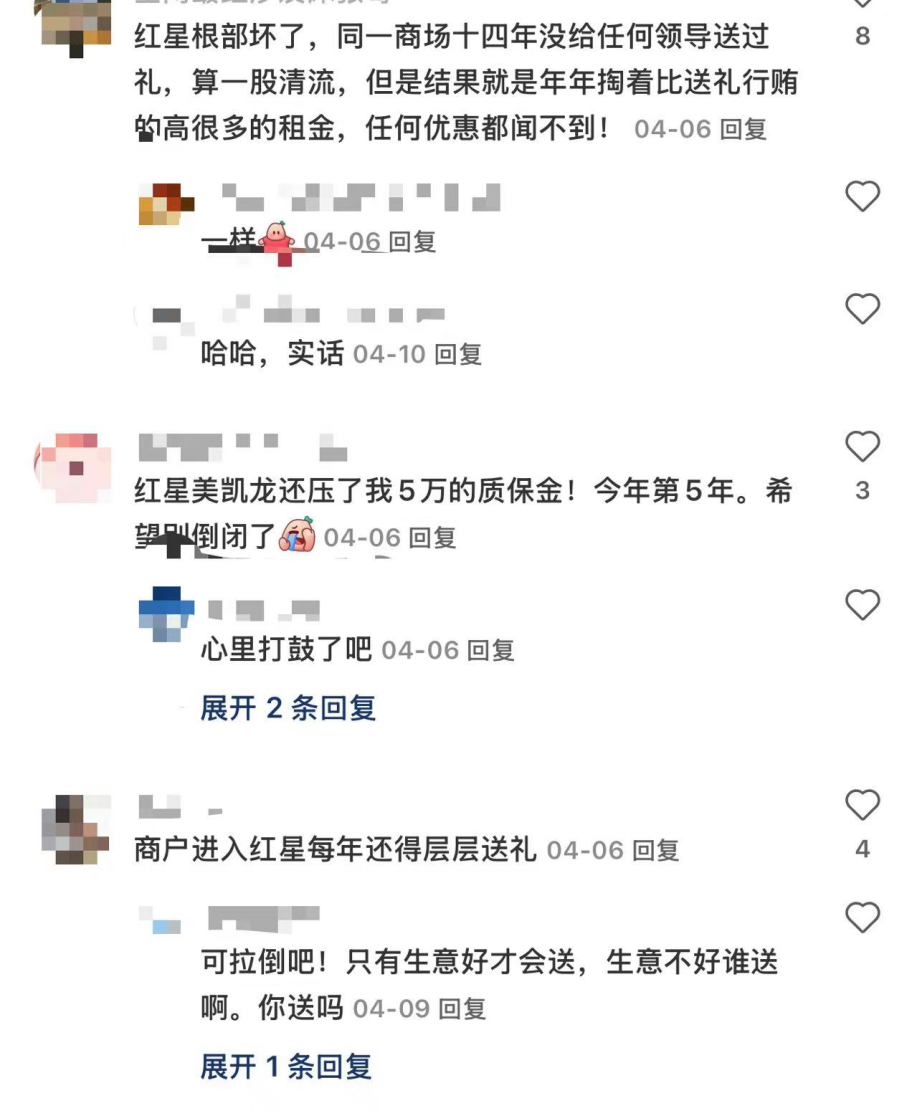 小编在另外一条帖子下面还嗅到了一丝八卦的蛛丝马迹,疑似有商家曝光红星美凯龙存在有“送礼”的现象。该网友更是直言“红星根部坏了”。