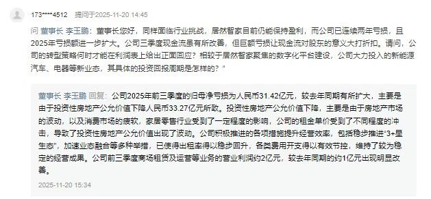 红星美凯龙召开2025年第三季度业绩说明会回应亏损问题