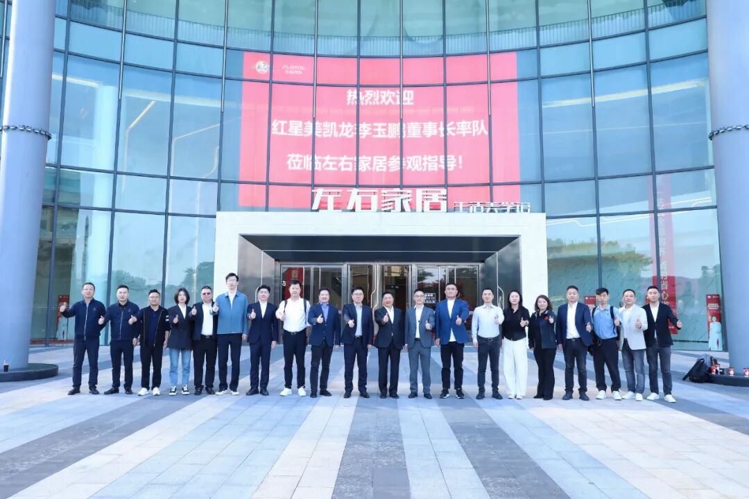 12月9日, 红星美凯龙 家居集团董事长李玉鹏、总经理施姚峰、执行总裁朱家桂、高级副总裁赵磊、彭永及相关业务管理人员,赴左右家居集团深圳总部开展深度业务交流。左右家居集团董事长黄华坤携左右家居事业部总经理黄元浩、左右设计家事业部总经理黄元正、常务副总裁李真东、副总裁胡志强、谭 国清 及品牌中心总经理慕博赟及相关业务管理人员共同参会。双方就渠道优化、新零售转型及供应链协同等议题进行深度交流,并确定多项具体的业务合作方向,进一步深化合作伙伴关系。