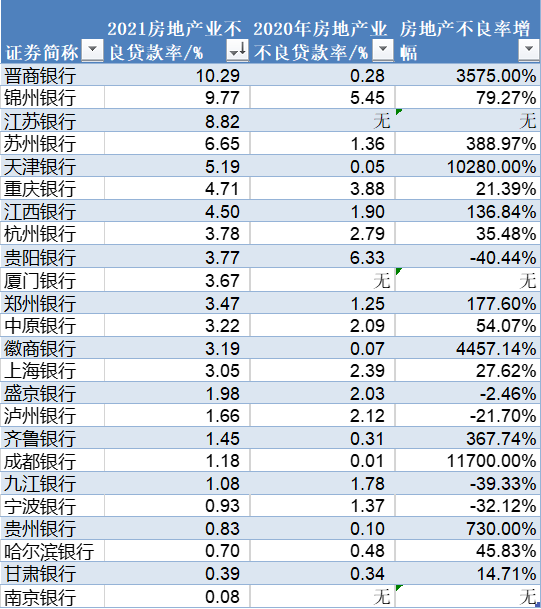 晋商银行房地产不良贷款率超10%两家增幅超100倍
