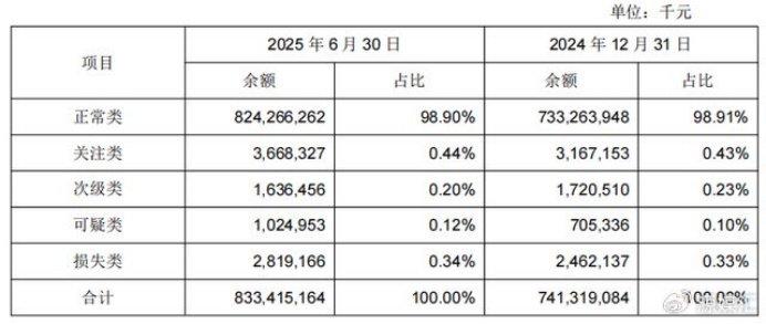 业绩承压的同时,成都银行还面临着资产质量的压力。首先不良贷款总量增加。半年报显示,报告期内,成都银行不良贷款比例0.66%,与上年末持平,但截至2025年6月末,成都银行的不良贷款余额为54.81亿元,较2024年末增加近6亿元。其中次级类贷款减少约0.85亿元,但可疑类贷款增加约3.2亿元,损失类贷款增加3.57亿元。
