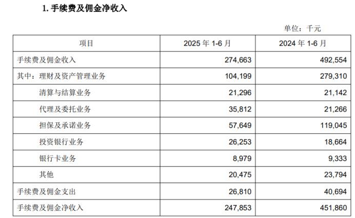 中间业务作为银行轻资本业务的重要组成部分,不仅能为银行带来稳定的收入,还能有效降低银行对传统存贷业务的依赖,是银行转型发展的重要方向。但记者注意到,今年上半年,成都银行手续费及佣金净收入却出现大幅下滑。半年报显示,报告期内,成都银行实现手续费及佣金净收入(即中收)2.48亿元,同比下降45.15%。从具体项目来看,该行理财及资产管理业务收入为1.04亿元,较去年同期的2.79亿元,下滑62.77%。担保及承诺业务收入收入为0.58亿元,同比下降51.25%。