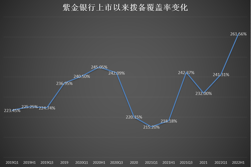 在风险抵补方面,紫金银行也是下足了功夫。截至二季度末,该行拨备覆盖率达到261.56%,较年初增加29.56个百分点,同样取得上市以来的最佳水平。