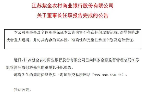 近日,江苏紫金农村商业银行(以下简称“紫金银行”)发布了一则关于其董事长任职进程的公告,引起了市场的广泛关注。