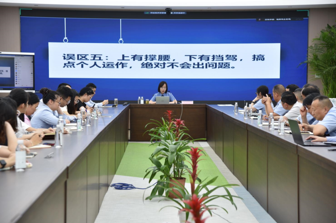 本次培训特别邀请了浙江省优秀公诉人,嘉兴市秀洲区检察官周颖。周检察官围绕防范岗位刑事风险,助力企业合规建设方面,从当前涉企犯罪新形势、八大认识误区、涉企犯罪的常见罪名、四大岗位风险环节、如何防范岗位风险,远离职务犯罪五大板块,深入浅出的剖析阐述了如何抓好企业廉洁从业建设和反腐败工作,给参与培训人员上了一次生动的廉洁从业教育课。