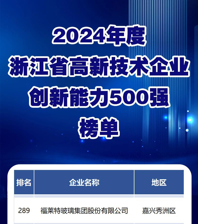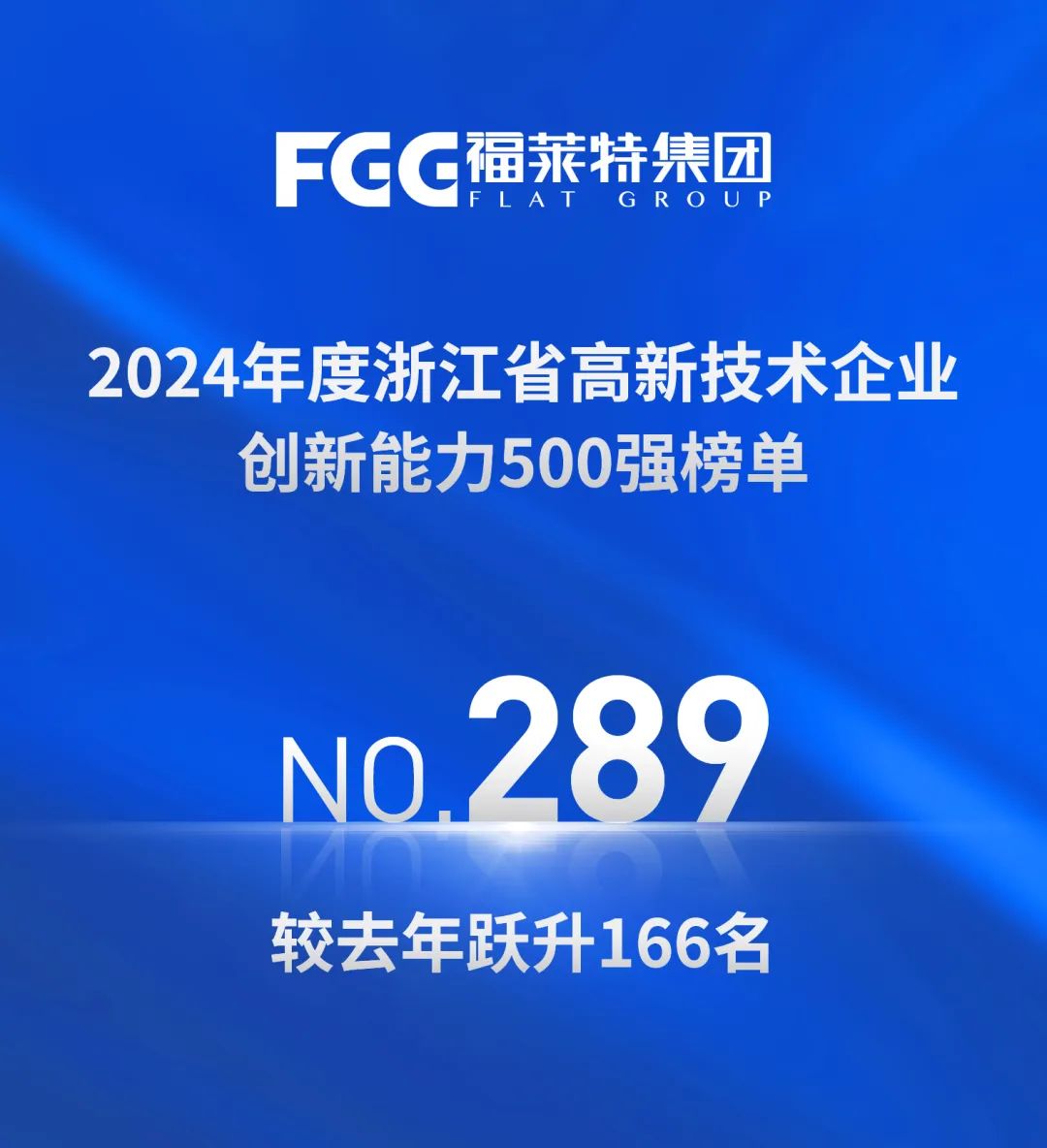 近期,2024年浙江省高新技术企业创新能力500强评选结果公布,在众多参评企业中,福莱特集团凭借卓越的创新能力和科研优势成功入选,位列第289位,相较去年排名提升166位,并连续三年入选该榜单。