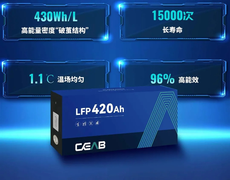 420安时具有充放电温升低、温场均匀的特点,采用新一代“破茧”结构提升了能量密度,同时该电池具有超长循环寿命、高能量效率、高安全、高一致性等优点。产品已经通过GB36276、UN38.3等多项认证,在正常针刺和水中针刺条件下,均不冒烟,不起火,不爆炸,无压降,具有极高安全性。
