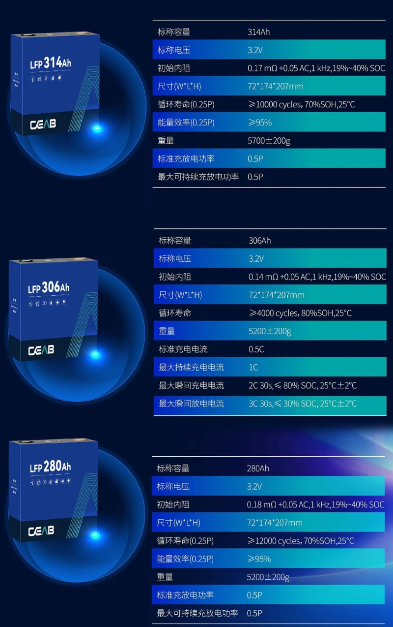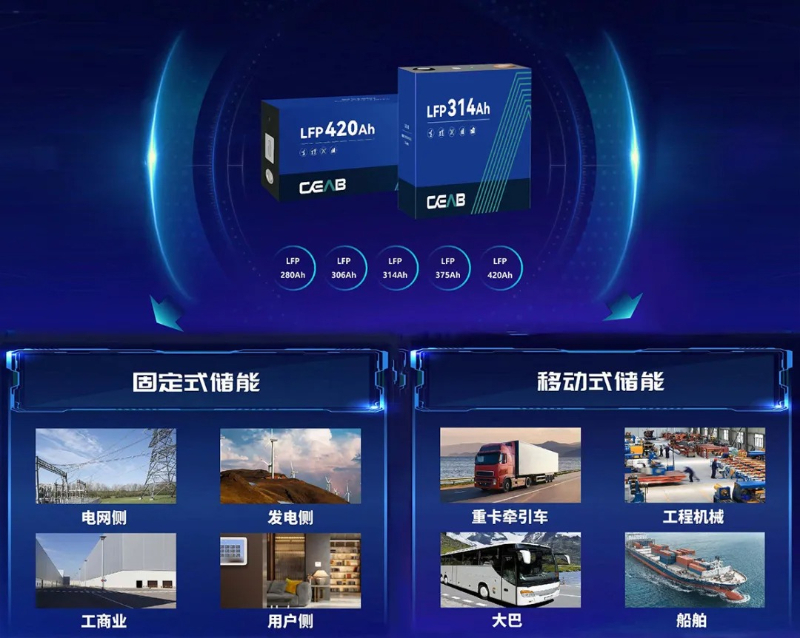 9月6日,中国能建旗下从事电芯生产制造的中能瑞新厦门生产基地项目正式开工,中能瑞新同时发布兼容储能、动力多种应用场景的420Ah、375Ah、314Ah、306Ah、280Ah共5款电芯产品,并重点推出了新一代储能专用产品420Ah电池。
