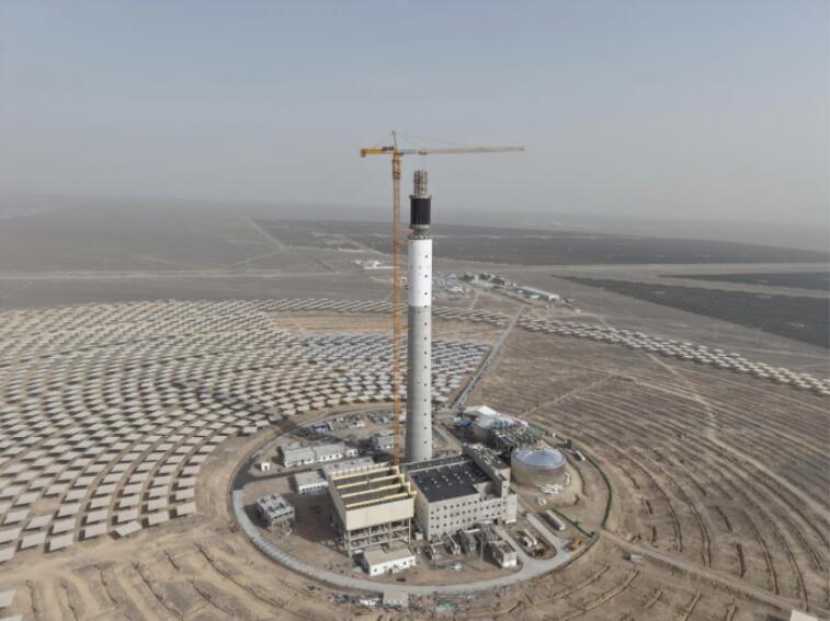 近日,中国能建西北院总承包的唐山海泰100兆瓦塔式光热项目吸热器管屏吊装全部完成。