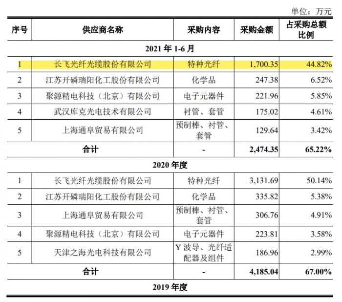 (图说:长飞光纤长期位居长盈通第一大供应商,图片来自招股书)