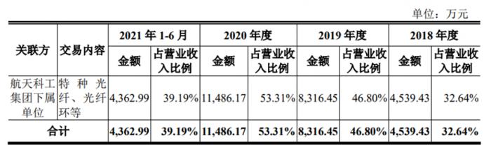 截至目前,上述引荐客户仍通过长盈通采购长飞光纤生产的保偏光纤,2019年至2021年,长盈通向上述引荐客户销售长飞光纤产品的收入分别达5424.34 万元、5070.08万元和1164.44 万元,占公司主营业务收入的比例分别达33.56%、24.59%和4.59%。