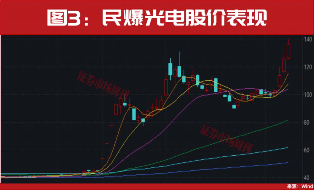 此外,值得一提是,更有公司通过收购的方式拓展 PCB 相关产能。如民爆光电,公司近期公告拟 2.45 亿元现金收购 PCB 钻针公司厦芝精密 51%股权。民爆光电主营业务为 LED 照明灯具,厦芝精密则聚焦 PCB 制造的专用核心耗材 PCB 钻针。近日,民爆光电股价迎来连续放量上涨,4 月以来上涨了超 30%(见图 3)。