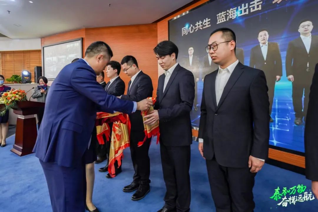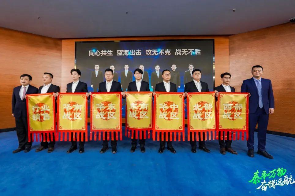 在正泰电器中国六大销售战区及行业区域销售战队进行风采视频展示后,南存辉董事长为正泰电器副总裁刘淼授旗,将信任和责任交到了中国区营销团队手中;在他见证下,刘淼将新一年的嘱托和期望郑重交付给六大战区及行业销售团队代表,这是挑战、是荣耀、也是披坚执锐的号角!