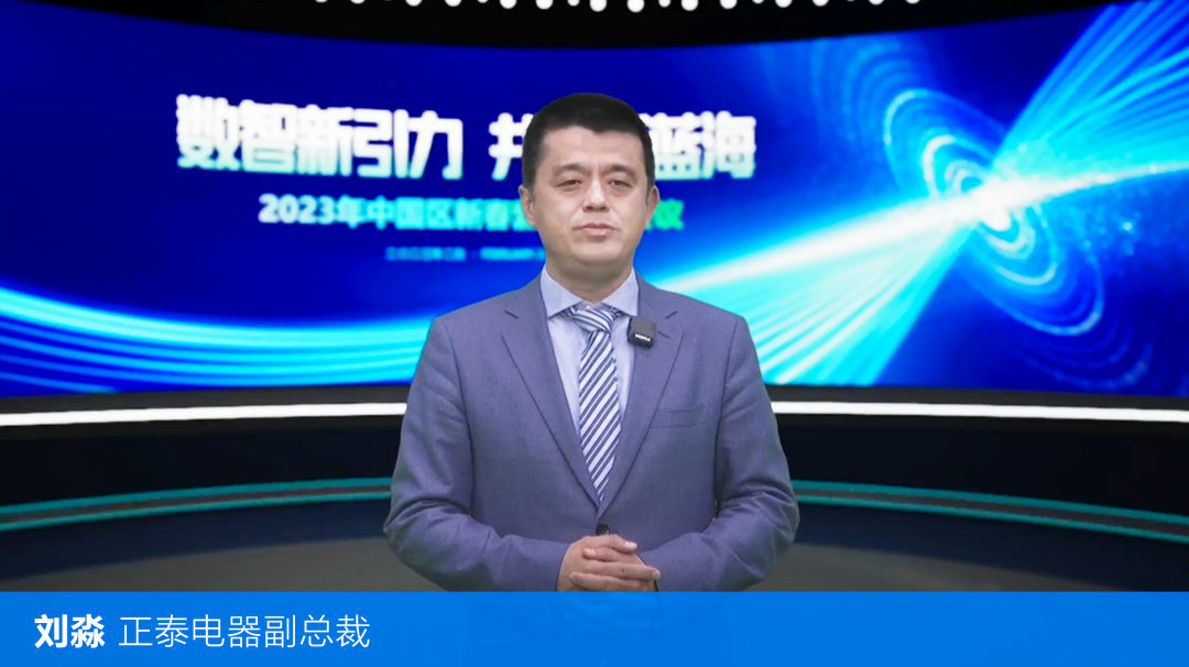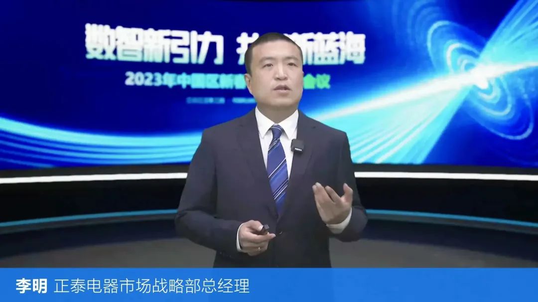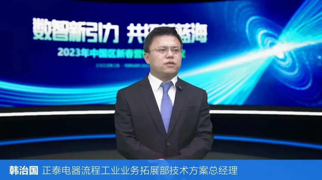 正泰电器流程工业业务拓展部技术方案总经理韩治国为流程工业业务定下2023年年度战略目标,并围绕钢铁、石油化工、轨道交通、智能配电、电能治理五大应用场景展开全链路的中低压供配电解决方案介绍。